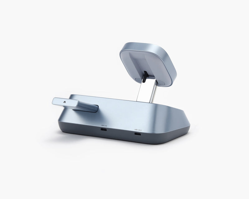 iPhone(17~12シリーズ)、Apple Watch、AirPodsをこれ1台で同時充電。インテリジェント電力分配により単体時は25Wフル出力、複数接続時も効率的にバランス充電。